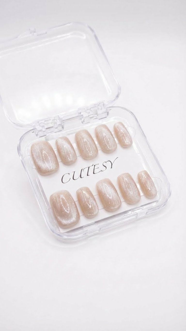 Press-On Nails | Salon Finish | Short Size | Set of 10 Product Details Type: Handmade Press-On Nails Set Size: 12 Nails Size: Medium Length: Short Shape: Short Square Color & Design Minimal design Elegant, modern and versatile look Quality & Finish 100% professional nail Smooth edges with a natural fit Lightweight, durable and reusable High-gloss gel finish Why You’ll Love It Salon-quality nails in minutes Comfortable for daily wear Suitable for parties, festivals, work and gifting No drying time, no nail damage What You Get 1 Set of 10 press-on nails (Medium) 6-piece press-on nail application kit