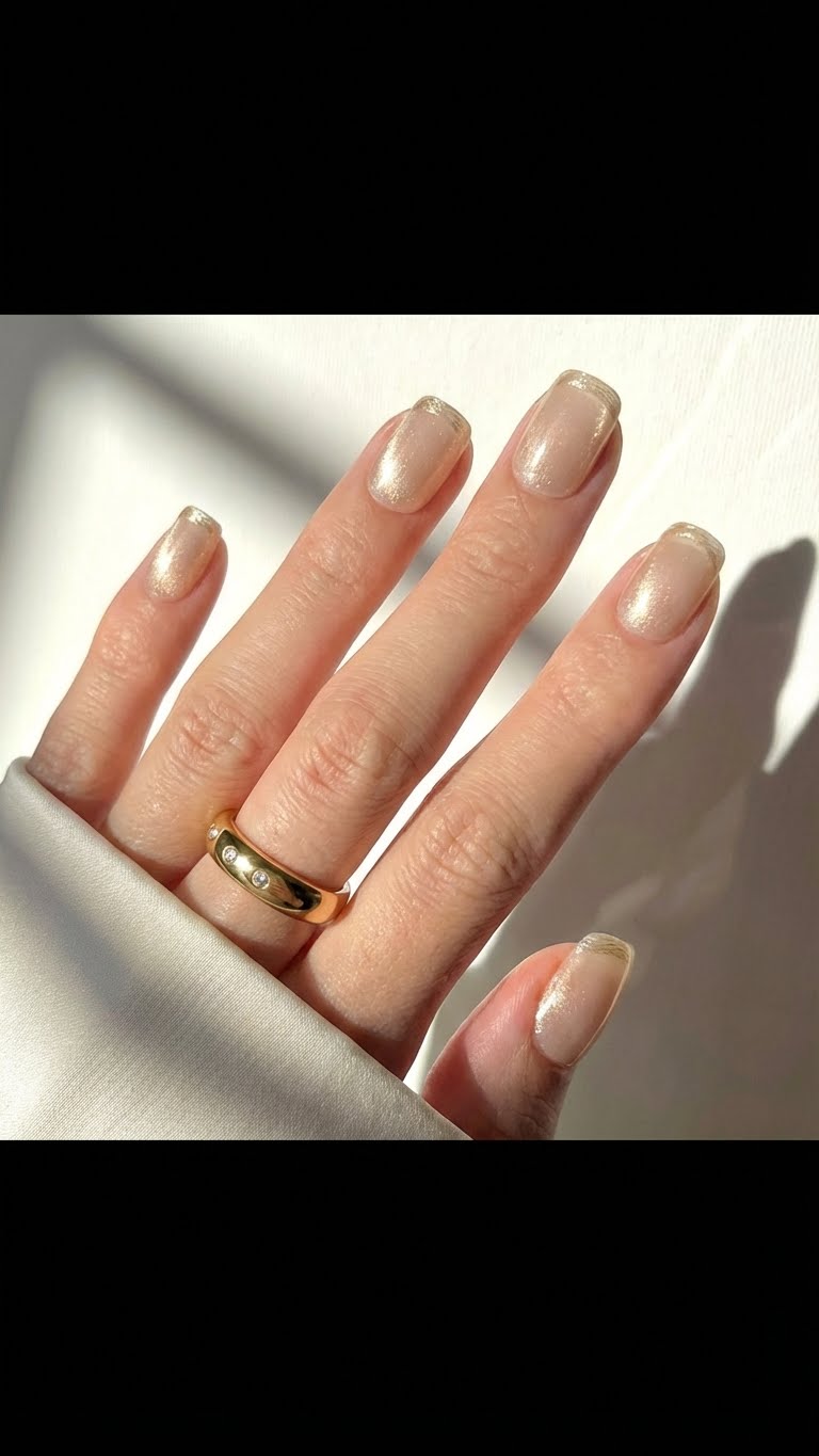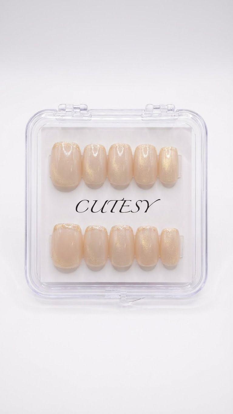 Handmade Press-On Nails | Salon Finish | Short Size | Set of 12 Champagne Veil Soft nude base with a subtle golden shimmer—luxury, understated, and effortless. With Golden French Tips Product Details Type: Handmade Press-On Nails Set Size: 12 Nails Size: Medium Length: Short Shape: Short Square Color & Design Minimal design Elegant, modern and versatile look Quality & Finish 100% handmade by professional nail artists Salon-made & UV-cured for long-lasting shine and strength Smooth edges with a natural fit Lightweight, durable and reusable High-gloss gel finish Why You’ll Love It Salon-quality nails in minutes Comfortable for daily wear Suitable for parties, festivals, work and gifting No drying time, no nail damage What You Get 1 Set of 12 handmade press-on nails (Medium) 6-piece press-on nail application kit