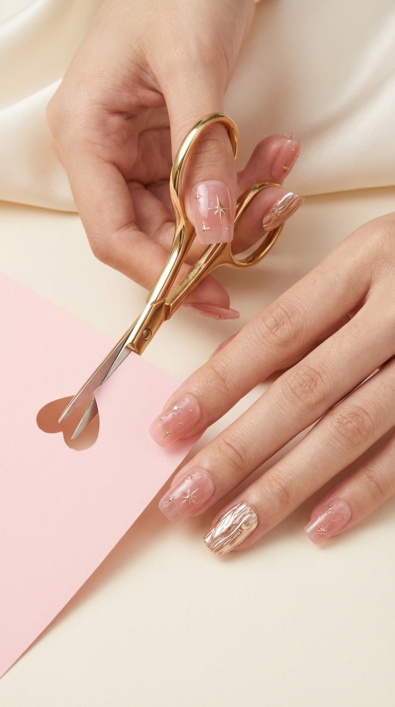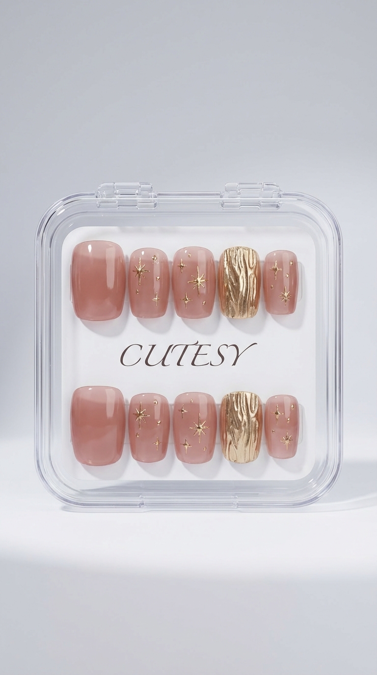 Press-On Nails | Salon Finish | Short Size | Set of 10 Product Details Type: Handmade Press-On Nails Set Size: 12 Nails Size: Medium Length: Short Shape: Short Square Color & Design Minimal design Elegant, modern and versatile look Quality & Finish 100% professional nail Smooth edges with a natural fit Lightweight, durable and reusable High-gloss gel finish Why You’ll Love It Salon-quality nails in minutes Comfortable for daily wear Suitable for parties, festivals, work and gifting No drying time, no nail damage What You Get 1 Set of 10 press-on nails (Medium) 6-piece press-on nail application kit