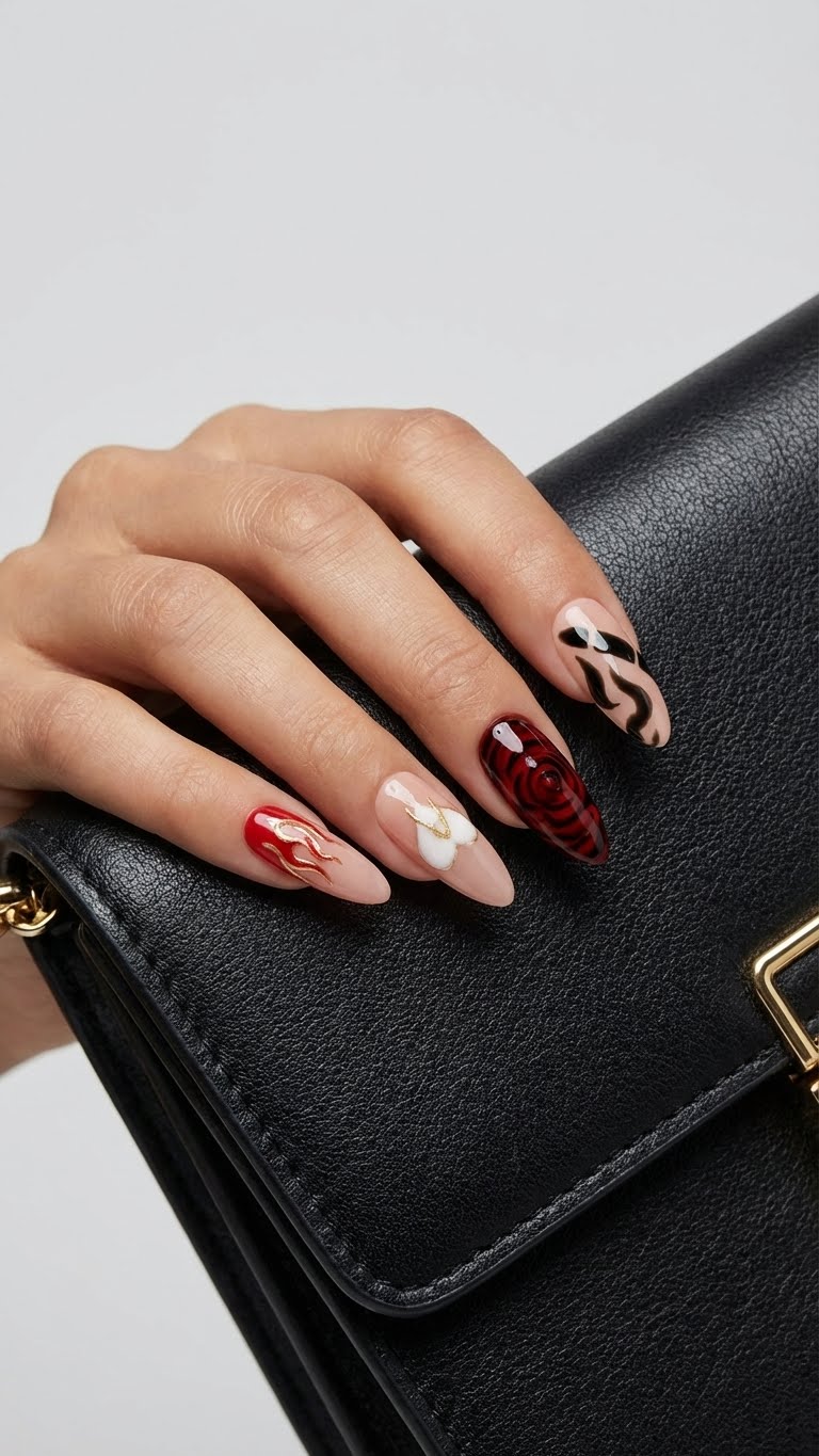 Handmade Press-On Nails | Salon Finish | Medium Size | Set of 12 Product Details Type: Handmade Press-On Nails Set Size: 12 Nails Size: Medium Length: Medium Shape: Almond Color & Design Premium rose and cigarettes nail art with flame cateye and white heart eith customizable letter with gold chrome nails High-gloss design Elegant, modern and versatile look Quality & Finish 100% handmade by professional nail artists Salon-made & UV-cured for long-lasting shine and strength Smooth edges with a natural fit Lightweight, durable and reusable High-gloss gel finish Why You’ll Love It Salon-quality nails in minutes Comfortable for daily wear Suitable for parties, festivals, work and gifting No drying time, no nail damage What You Get 1 Set of 12 handmade press-on nails (Medium) 6-piece press-on nail application kit