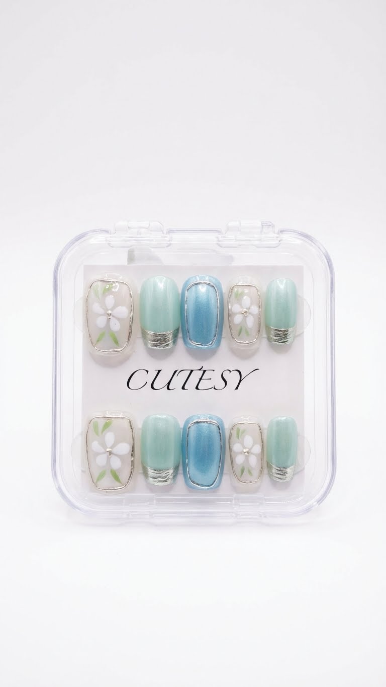 Press-On Nails | Salon Finish | Short Size | Set of 10 Product Details Type: Handmade Press-On Nails Set Size: 12 Nails Size: Medium Length: Short Shape: Short Square Color & Design Minimal design Elegant, modern and versatile look Quality & Finish 100% professional nail Smooth edges with a natural fit Lightweight, durable and reusable High-gloss gel finish Why You’ll Love It Salon-quality nails in minutes Comfortable for daily wear Suitable for parties, festivals, work and gifting No drying time, no nail damage What You Get 1 Set of 10 press-on nails (Medium) 6-piece press-on nail application kit