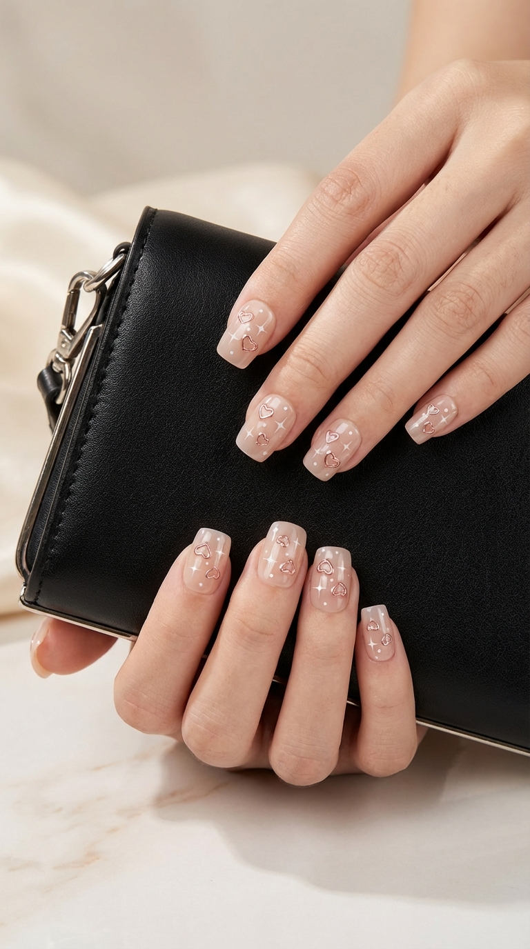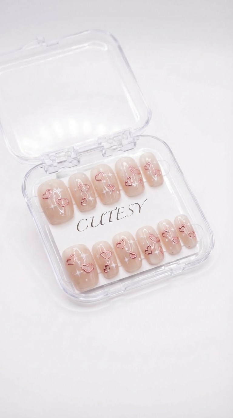 Press-On Nails | Salon Finish | Short Size | Set of 10 Product Details Type: Handmade Press-On Nails Set Size: 12 Nails Size: Medium Length: Short Shape: Short Square Color & Design Minimal design Elegant, modern and versatile look Quality & Finish 100% professional nail Smooth edges with a natural fit Lightweight, durable and reusable High-gloss gel finish Why You’ll Love It Salon-quality nails in minutes Comfortable for daily wear Suitable for parties, festivals, work and gifting No drying time, no nail damage What You Get 1 Set of 10 press-on nails (Medium) 6-piece press-on nail application kit